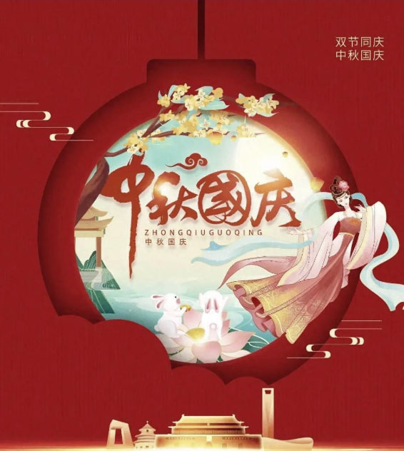 国庆中秋双节至,家国同庆乐无边。国泰民安映明月,团圆美满共此时。